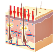 V prípade prirodzenej aplikácie a vstrebávania produktov do pokožky klasickým ošetrením je veľmi nízka a nepreniká do epidermis. Preto odporúčame náš EMS.