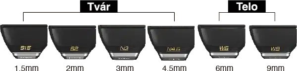 Rôzne nadstavce s rôznou hĺbkou, ktoré spĺňajú individuálne potreby ošetrenia v závislosti od typu pokožky, ošetrovanej oblasti a hĺbky od dermy po podkožnú tukovú vrstvu.