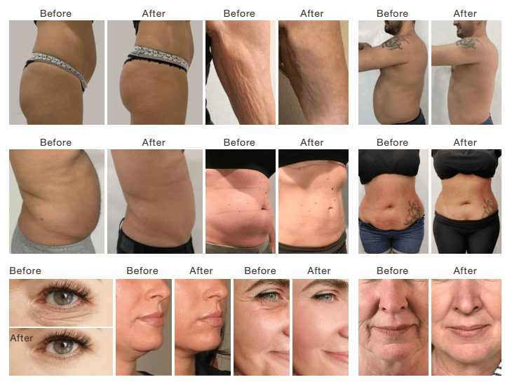 Unikátna technológia 5v1 s kompresnou mikrovibráciou, mechanickými valčekmi, RF, vákuum a infračervené svetlo. Rozmanité nadstavce rôznych veľkostí na boj proti starnutiu tváre a formovanie tela.